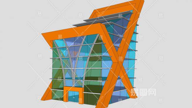 现代办公楼设计建筑SU模型下载_sketchup草图大师SKP模型