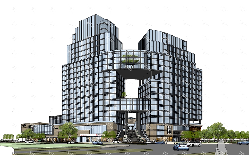 现代高层办公楼草图大师模型,高层办公楼sketchup模型免费下载