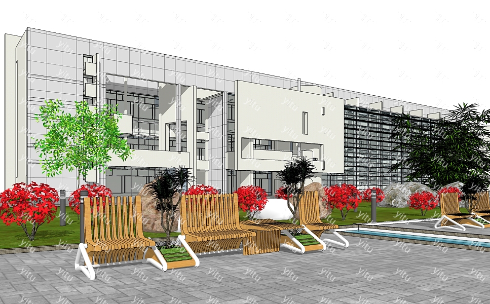 现代办公楼外观草图大师模型,办公楼外观sketchup模型免费下载