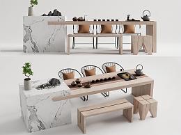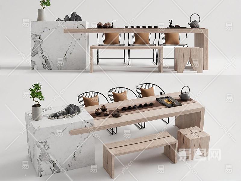新中式中岛吧台 茶桌椅 书桌椅 茶具 中岛台 室内