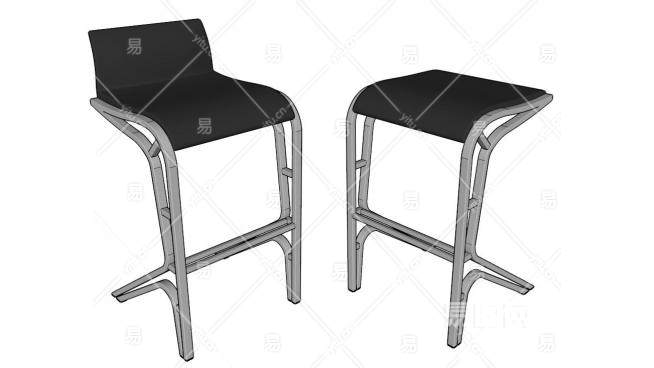 黑色吧椅酒吧凳子SU模型下载_sketchup草图大师SKP模型