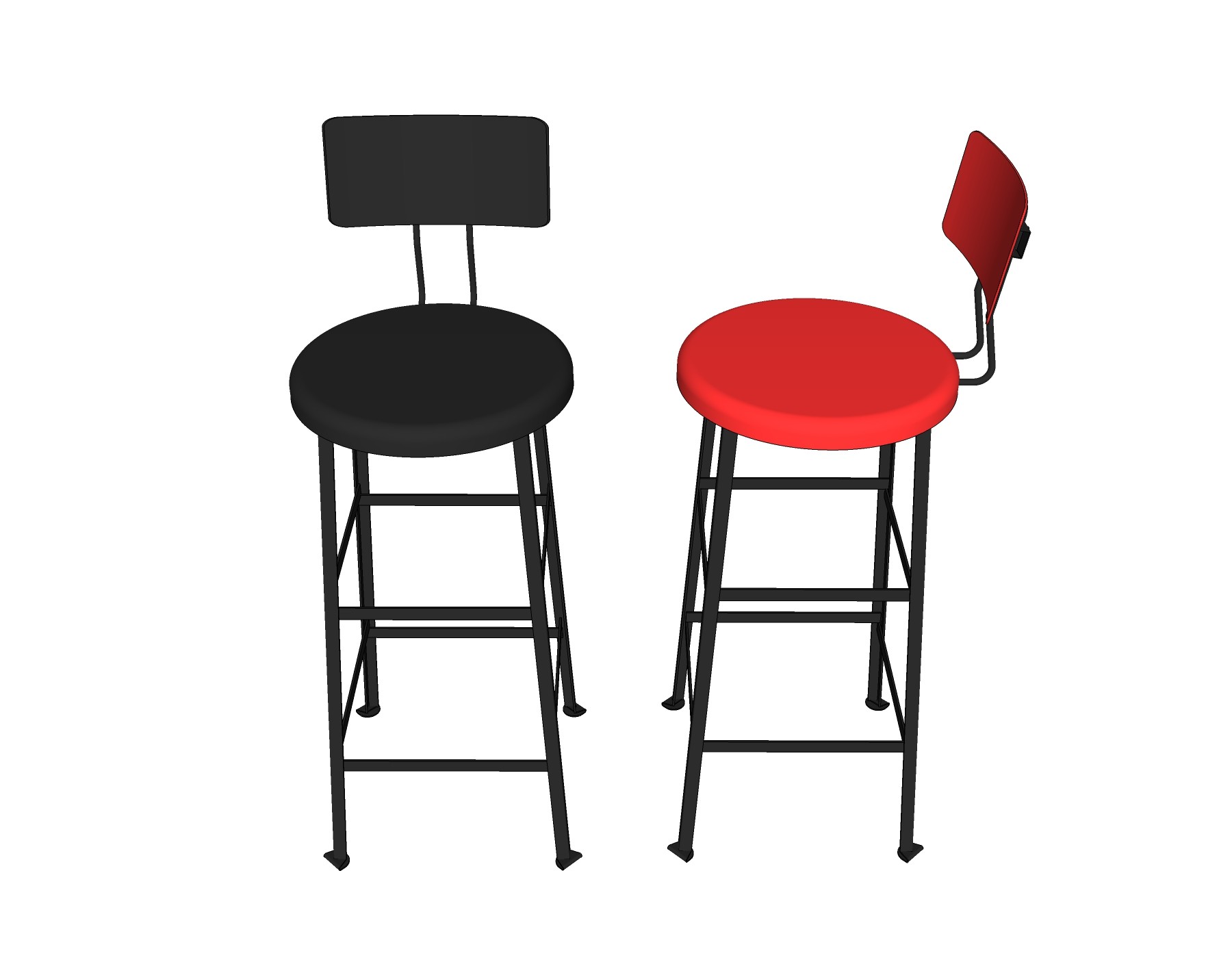 现代钢木吧椅su模型,吧椅草图大师模型下载