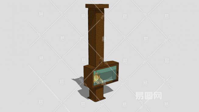 现代木质燃木壁炉SU模型下载_sketchup草图大师SKP模型