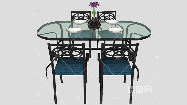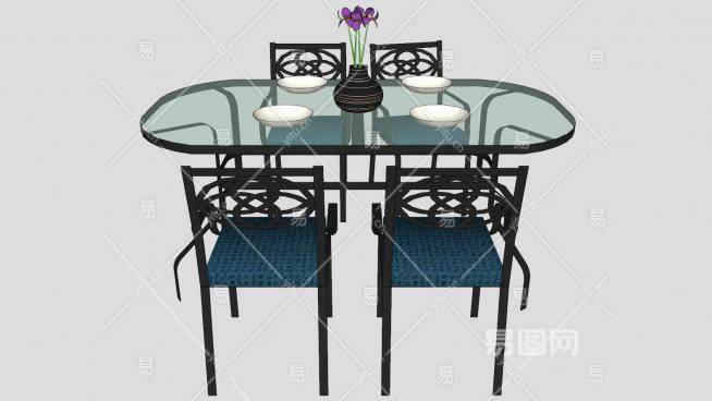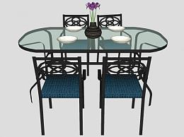 饭厅餐桌椅及花瓶SU模型下载_sketchup草图大师SKP模型