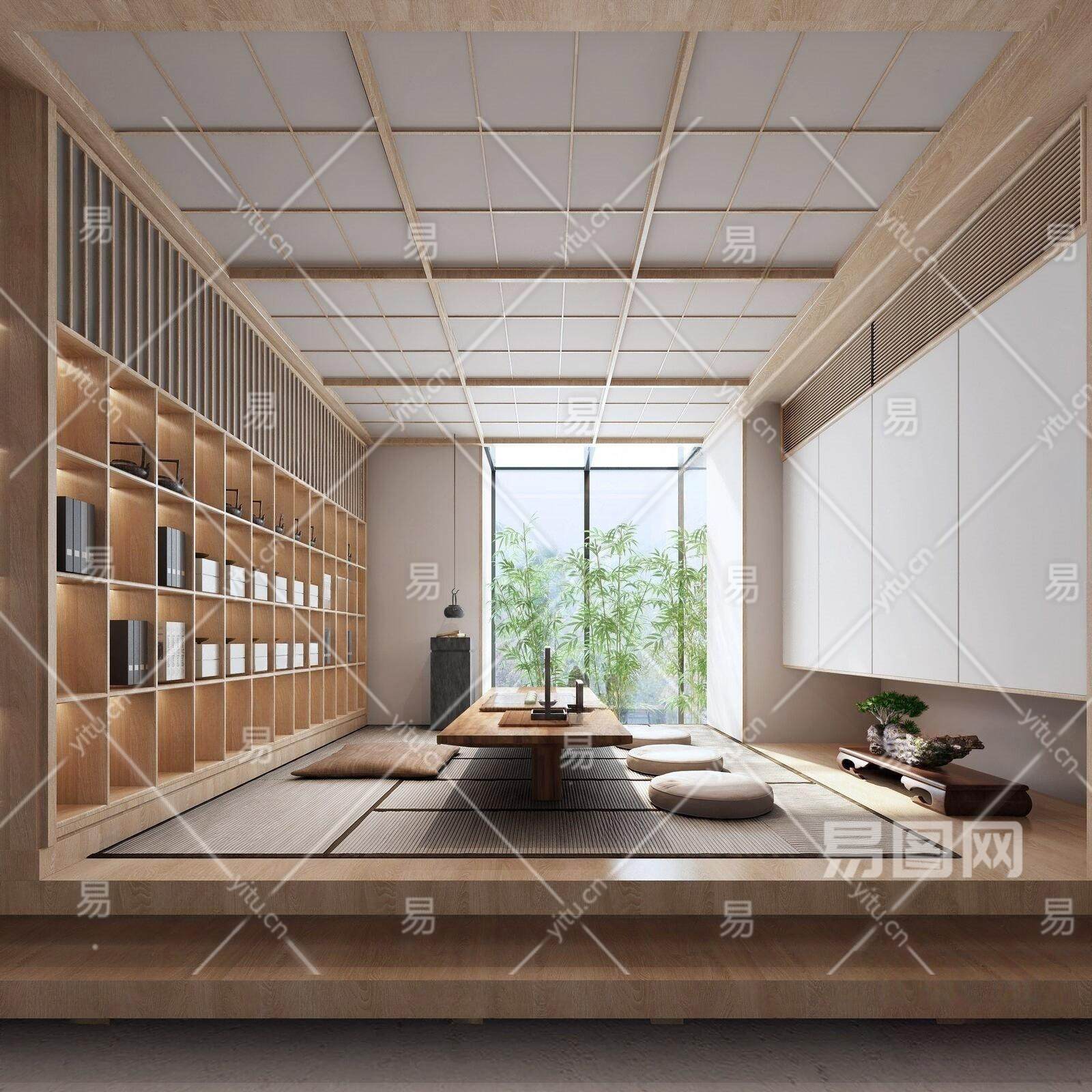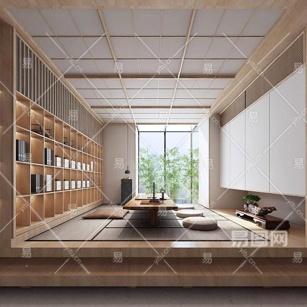 日式榻榻米茶室 榻榻米地台茶室升降茶桌椅 茶具茶柜装饰柜书柜 罗汉松摆件