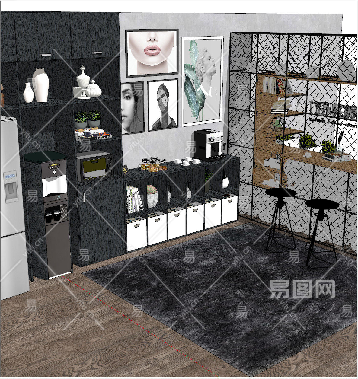 当前的位置:首页 > sketchup > sketchup模型 > 办公机构 > 茶水间 > SU精致室内模型,门厅企业形象墙水吧桌椅组合