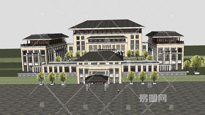 生态酒店度假会所SU模型下载_sketchup草图大师SKP模型