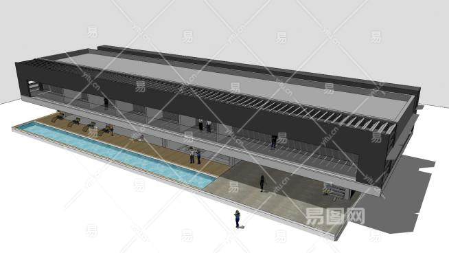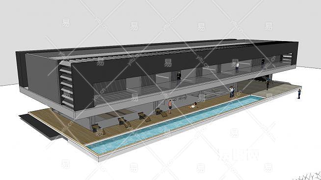 现代休闲泳池俱乐部建筑SU模型下载_sketchup草图大师SKP模型
