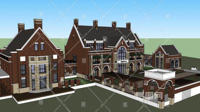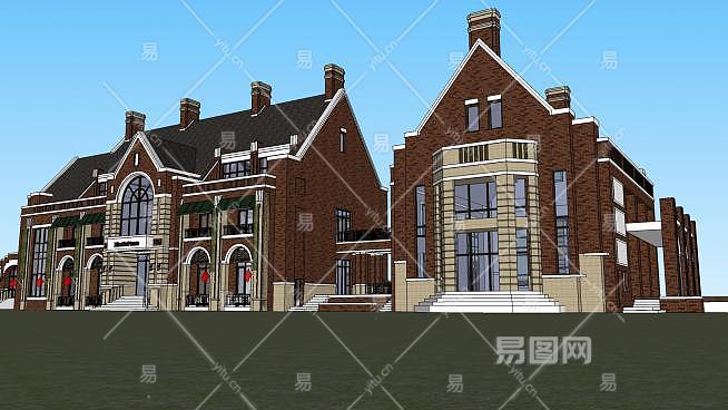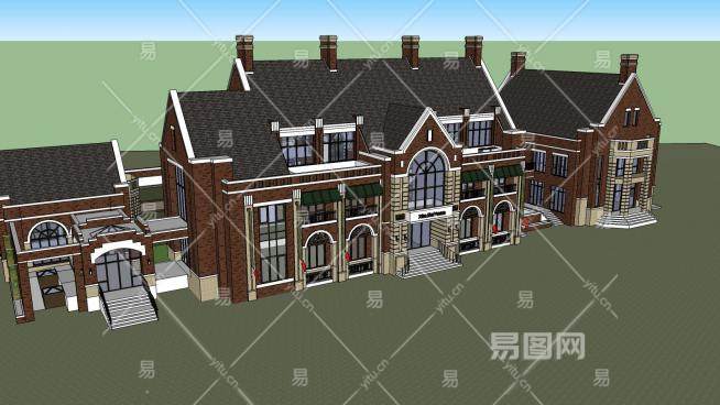 英式会所英式联排别墅SU模型下载_sketchup草图大师SKP模型