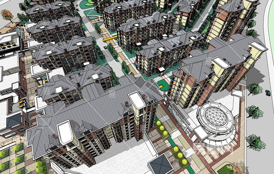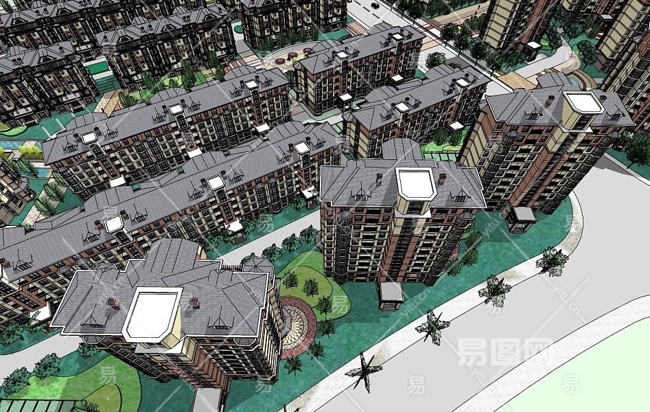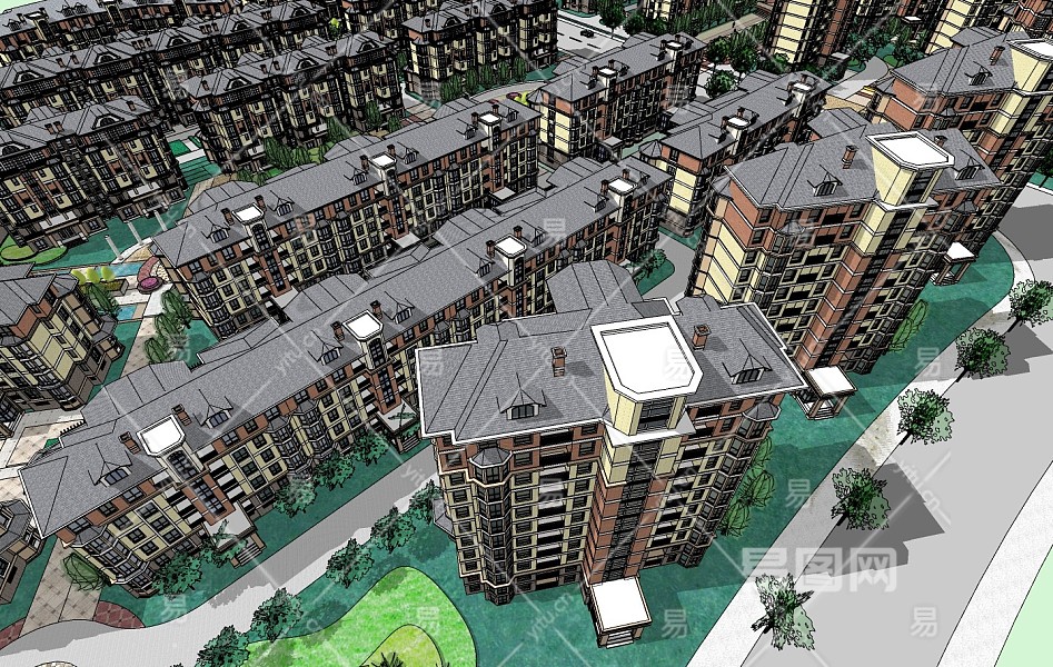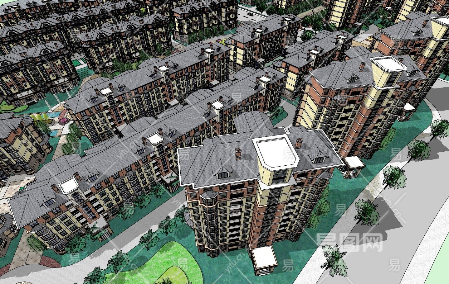 当前的位置:首页 > sketchup > sketchup模型 > 建筑 > 城市建筑 > 简欧欧式多层高层小区居住区规划建筑