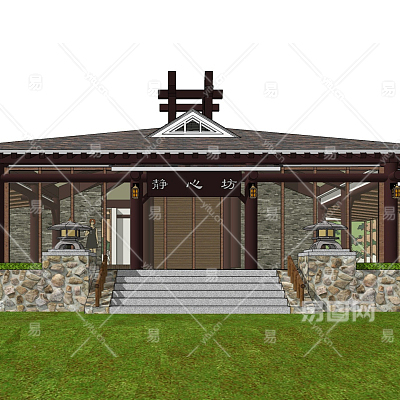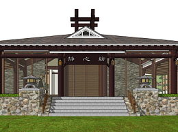 中式会所外观su模型