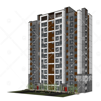 新中式高层公寓楼su模型