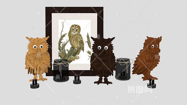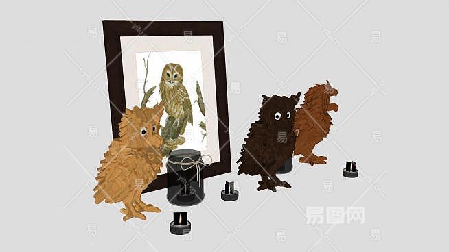 猫头鹰工艺品装饰摆件SU模型下载_sketchup草图大师SKP模型