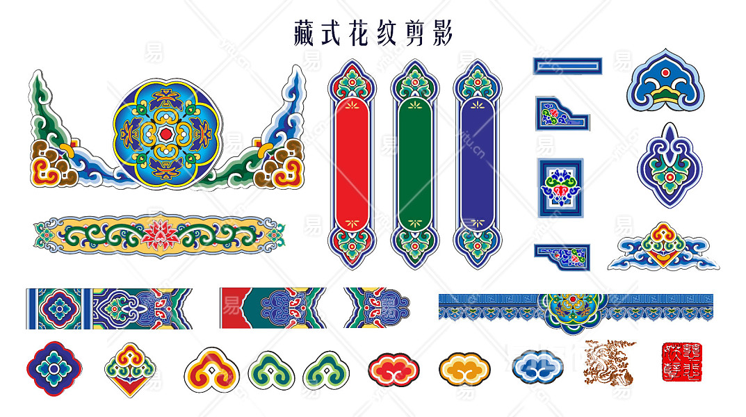 藏式花纹 民族装饰工艺品 藏式图腾 刺绣蜡染 传统元素