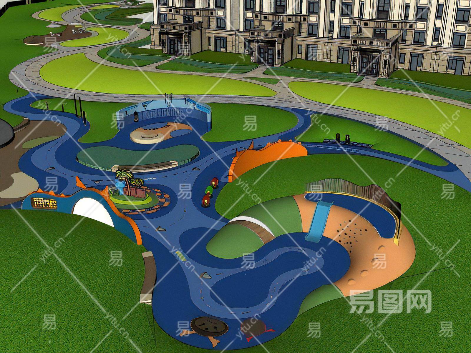 当前的位置:首页 > sketchup > sketchup模型 > 景观规划 > 儿童游乐区 > 现代儿童游乐区鸟瞰