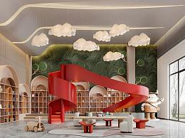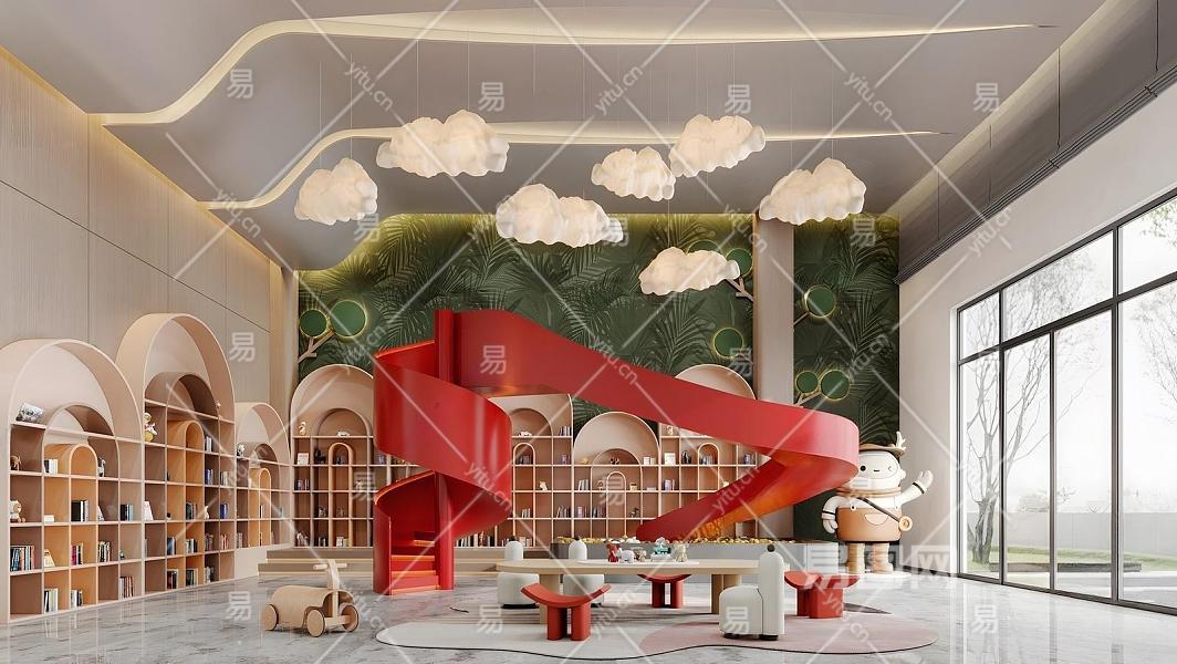 现代儿童活动空间 书桌椅组合 滑滑梯