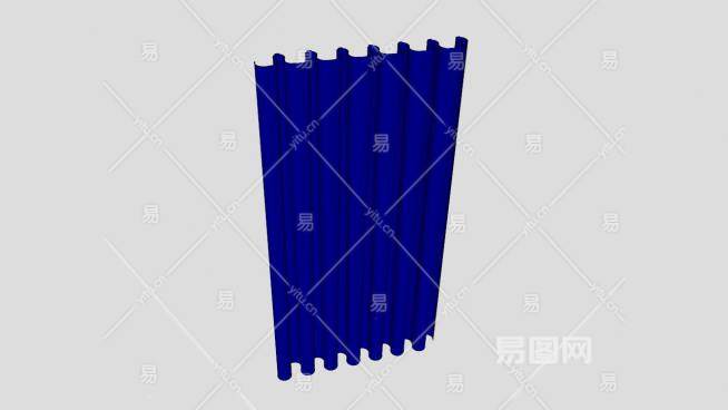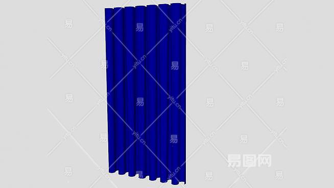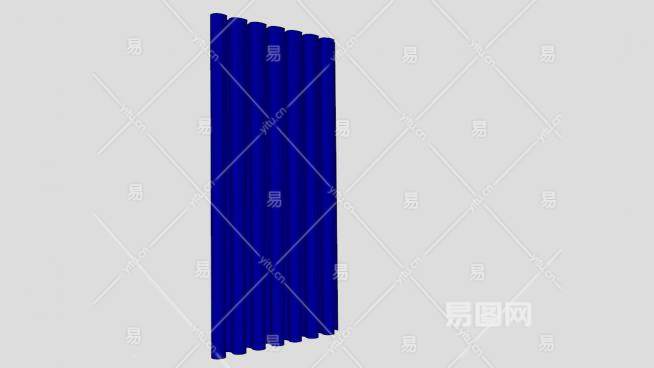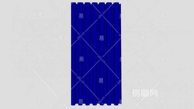蓝色手动开合窗帘SU模型下载_sketchup草图大师SKP模型