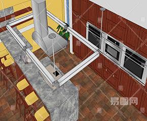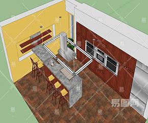 家居开放岛型厨房SU模型下载_sketchup草图大师SKP模型
