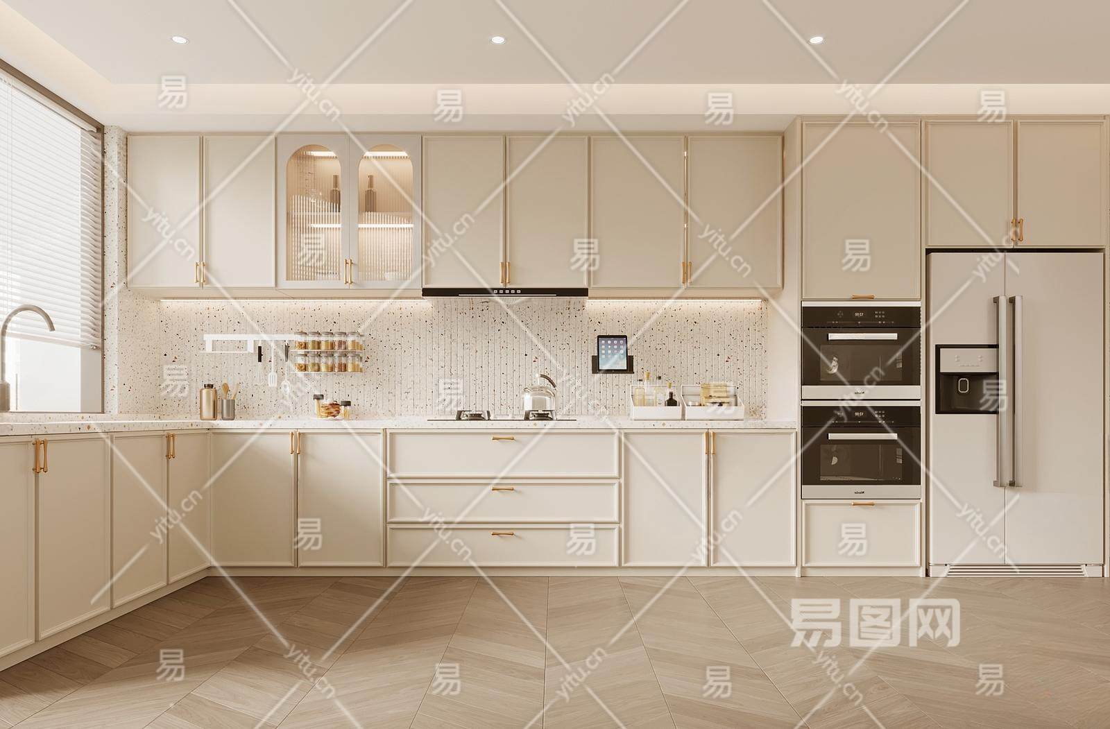 法式奶油风厨房 蒸箱 烤箱 冰箱