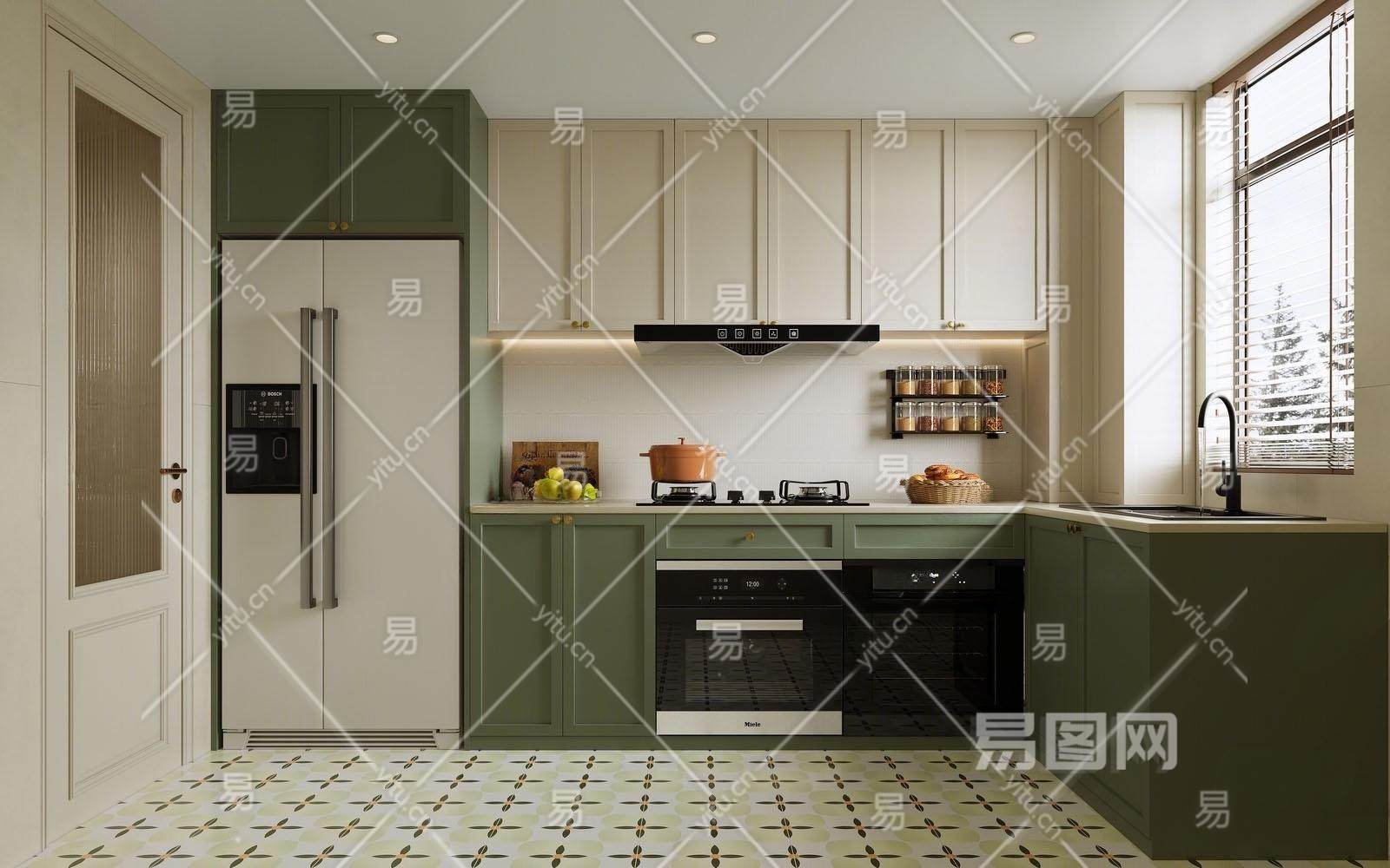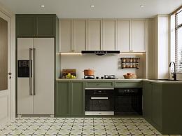 法式封闭式厨房 冰箱 洗碗机 烤箱 油烟机 微波炉