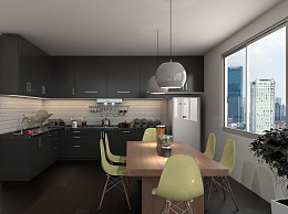 现代封闭厨房 餐桌