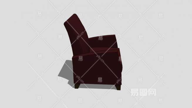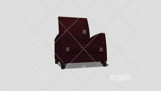 布艺沙发酒红单人沙发SU模型下载_sketchup草图大师SKP模型