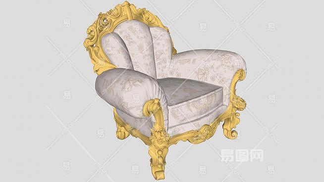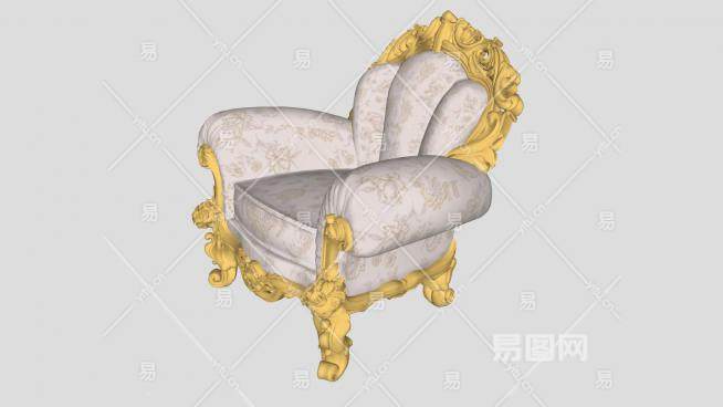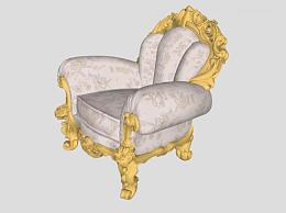 欧式巴洛克沙发椅SU模型下载_sketchup草图大师SKP模型