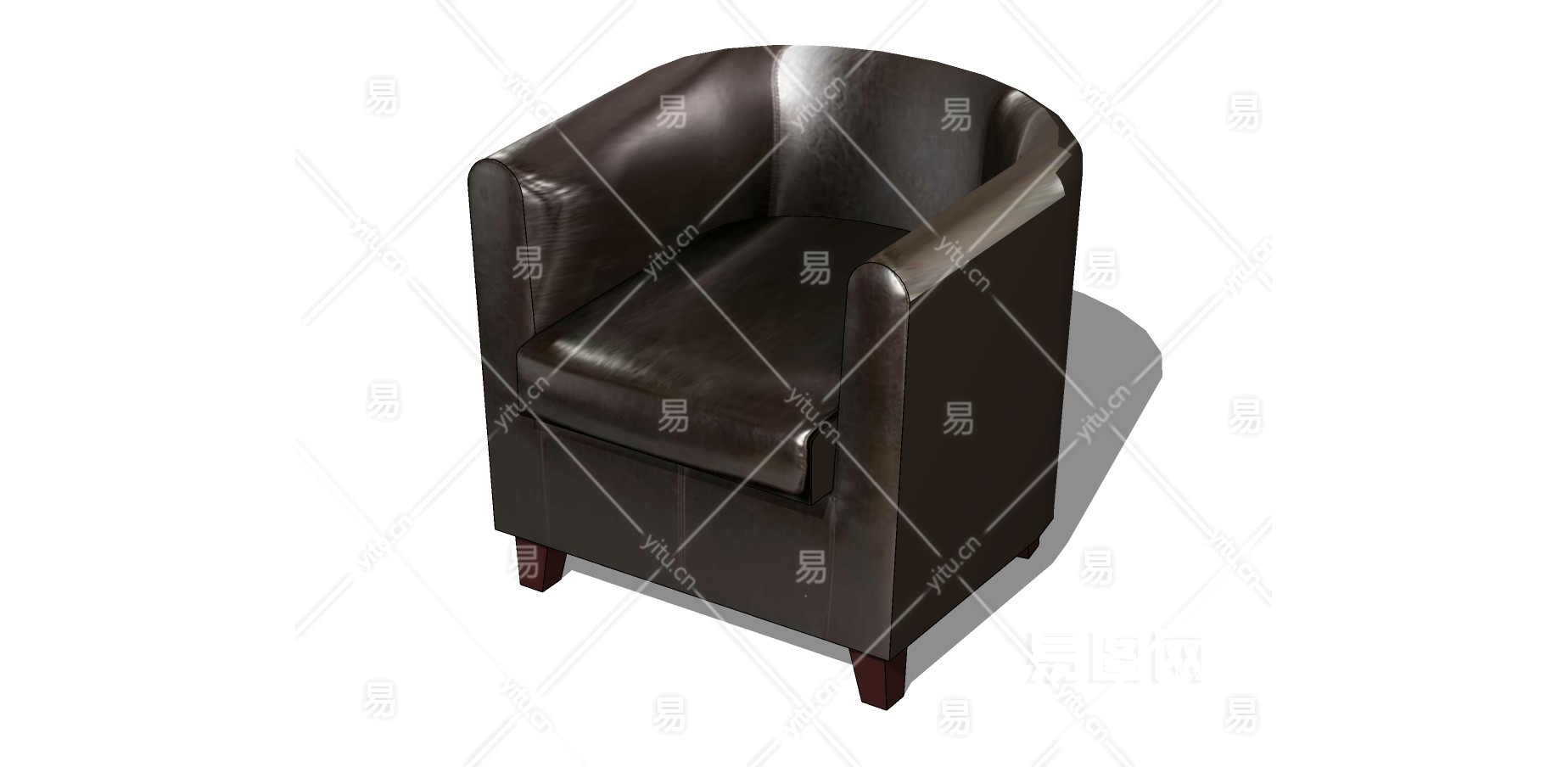 18现代皮革沙发 单人沙发椅 办公沙发su草图模型下载