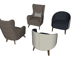 70现代单人沙发椅 现代单人沙发 单人椅 沙发椅 靠枕su草图模型下载