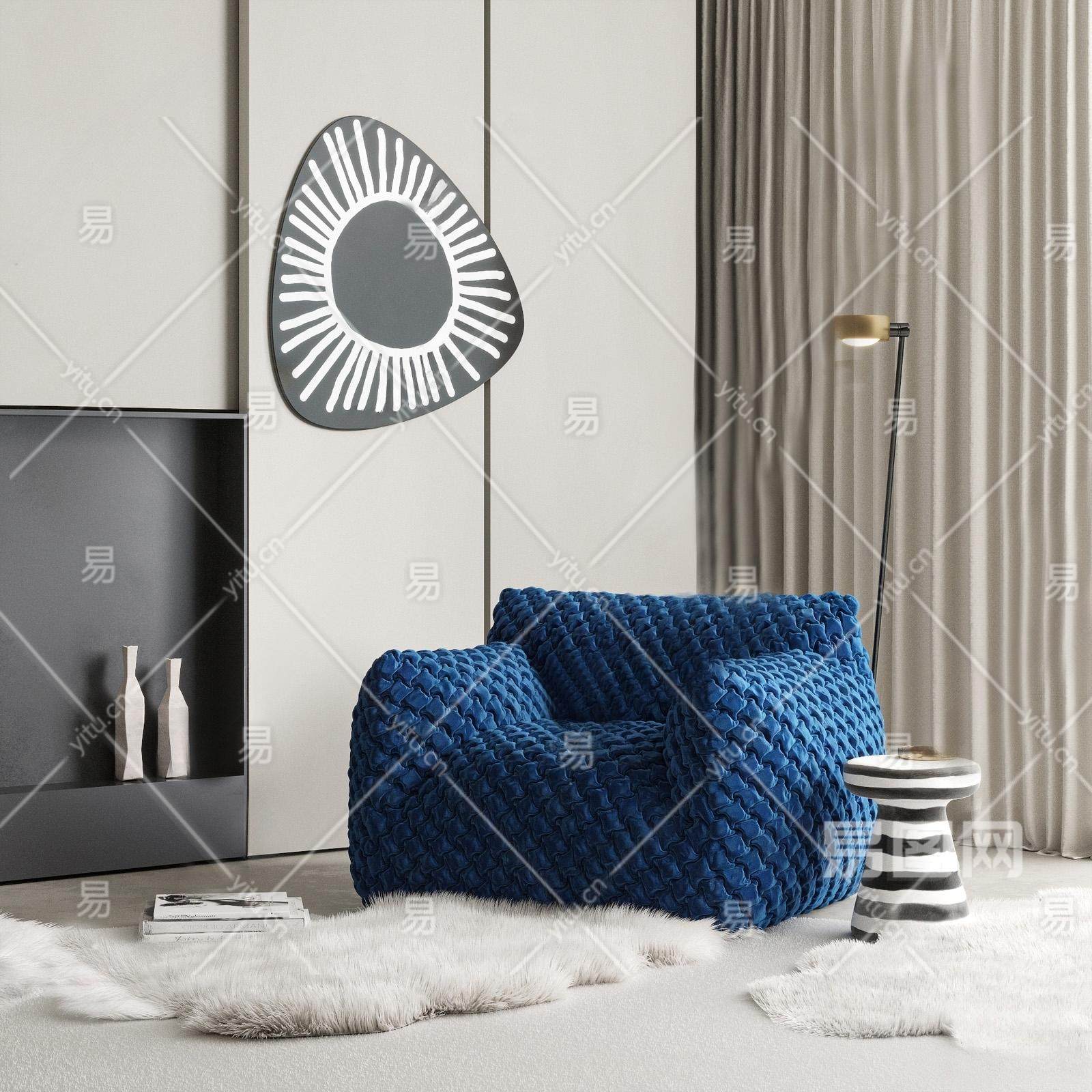 Gervasoni现代蓝胖子单人沙发 懒人沙发 落地灯 墙饰 地毯