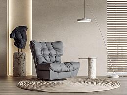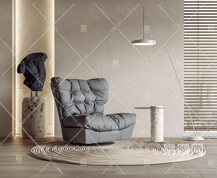 现代单人云朵沙发 落地灯 卷帘 藤编地毯 雕塑