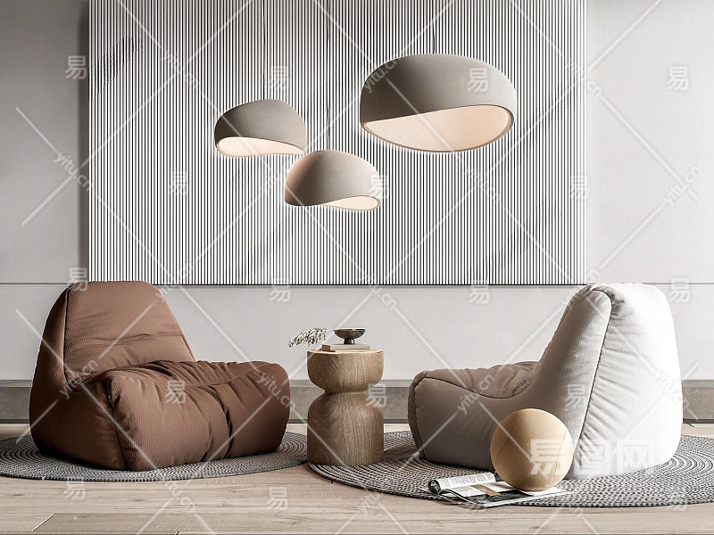 FLEXFORM现代懒人沙发 吊灯 边几 单人沙发 地毯