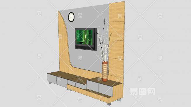 木制电视柜电视墙SU模型下载_sketchup草图大师SKP模型