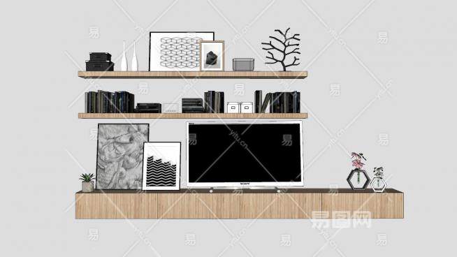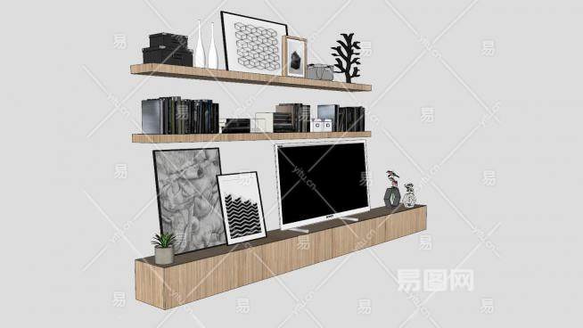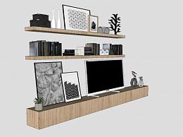 电视柜书本工艺品SU模型下载_sketchup草图大师SKP模型