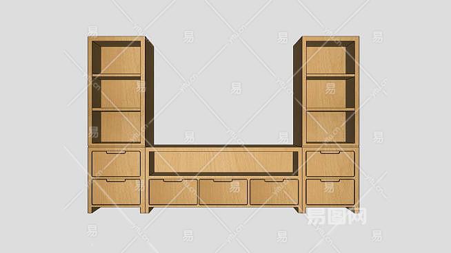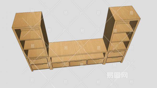 木质组合式简约电视柜SU模型下载_sketchup草图大师SKP模型