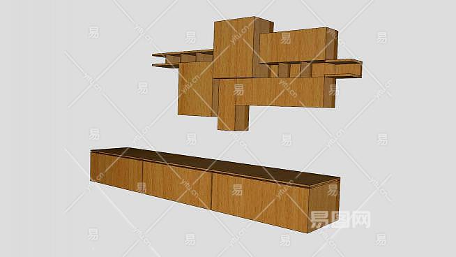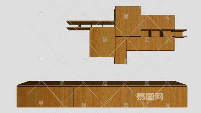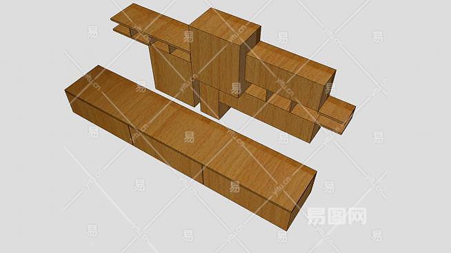 板架式木质电视柜SU模型下载_sketchup草图大师SKP模型