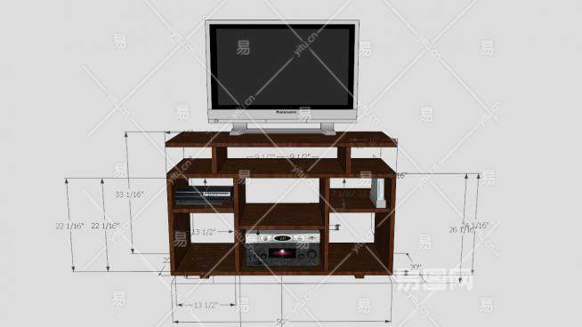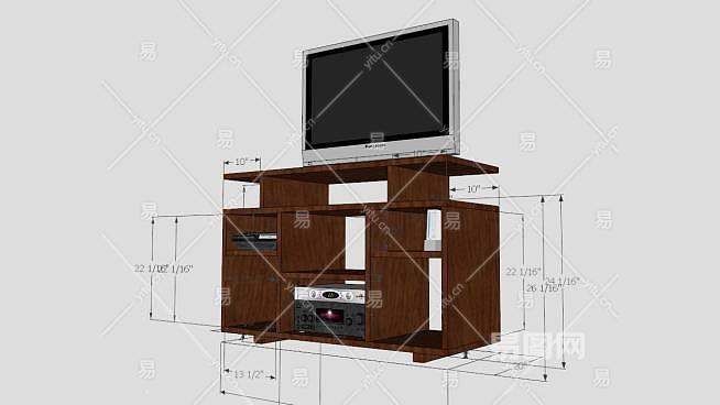 带有部件的电视柜SU模型下载_sketchup草图大师SKP模型