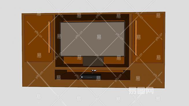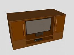 电视柜带有等离子屏幕电视SU模型下载_sketchup草图大师SKP模型