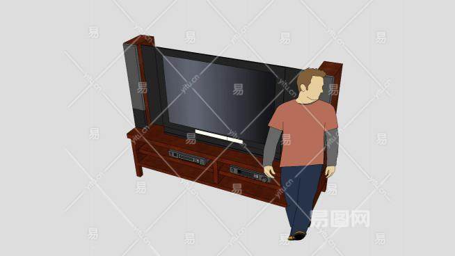 中式风格实木电视柜SU模型下载_sketchup草图大师SKP模型