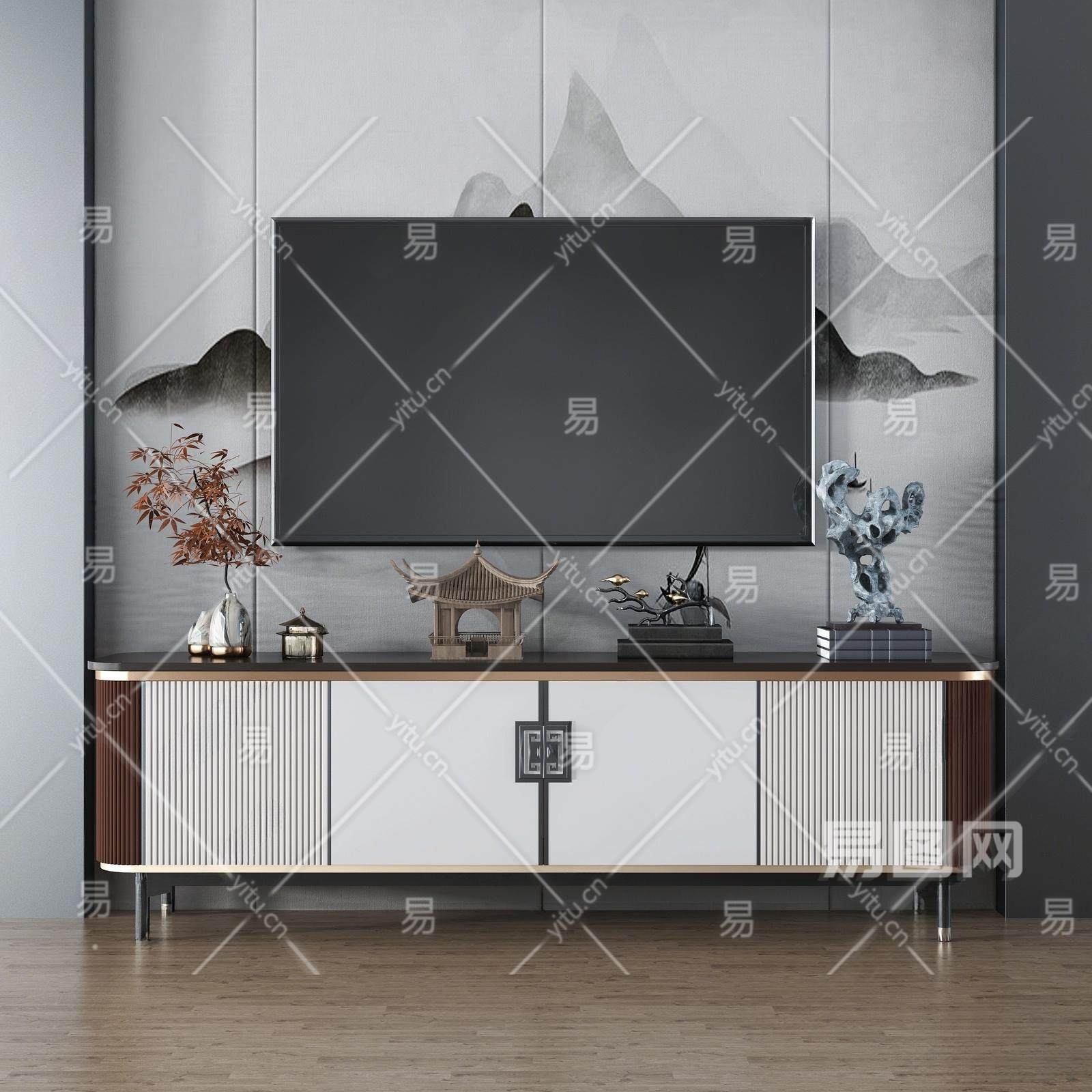 m210618新中式电视柜,装饰柜,花瓶,雕塑 (1)