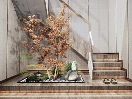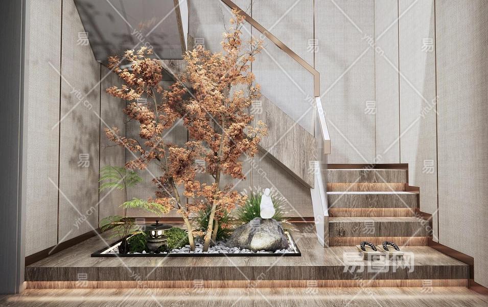 日式楼梯间 景观小品 庭院小品 扶手楼梯 楼梯间 庭院石头枫树景观