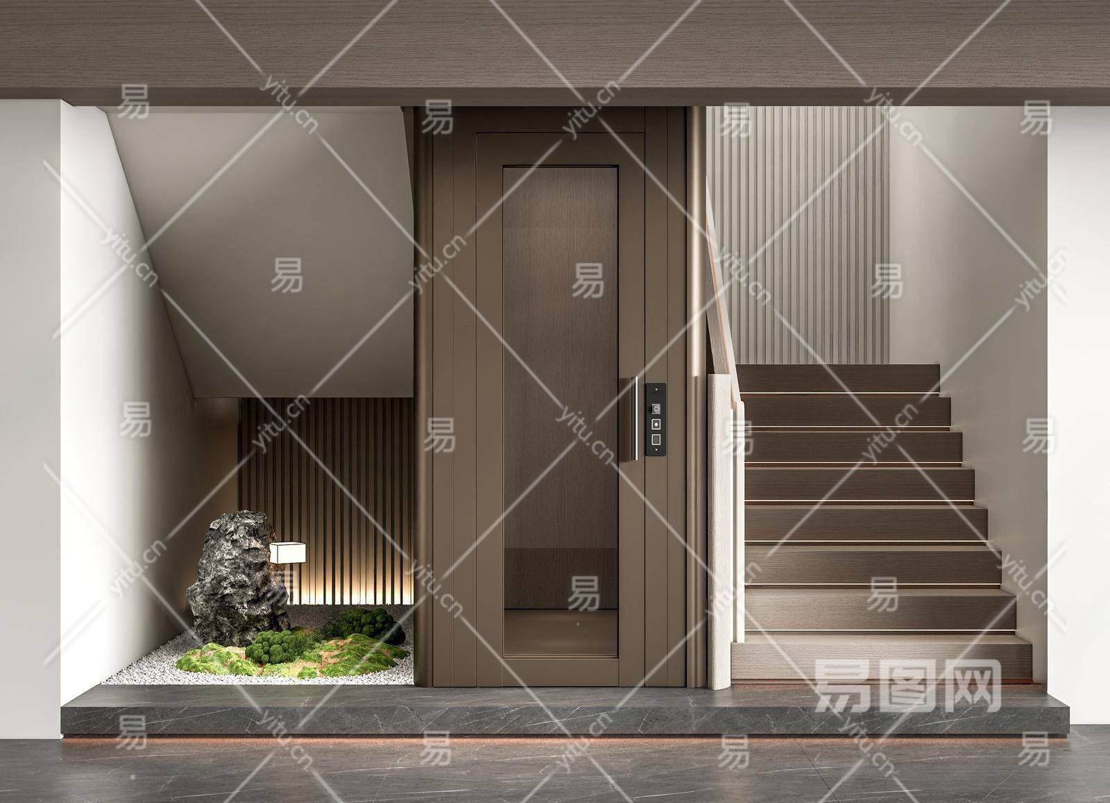 现代楼梯间 电梯 升降梯 扶手楼梯 庭院小品 景观电梯