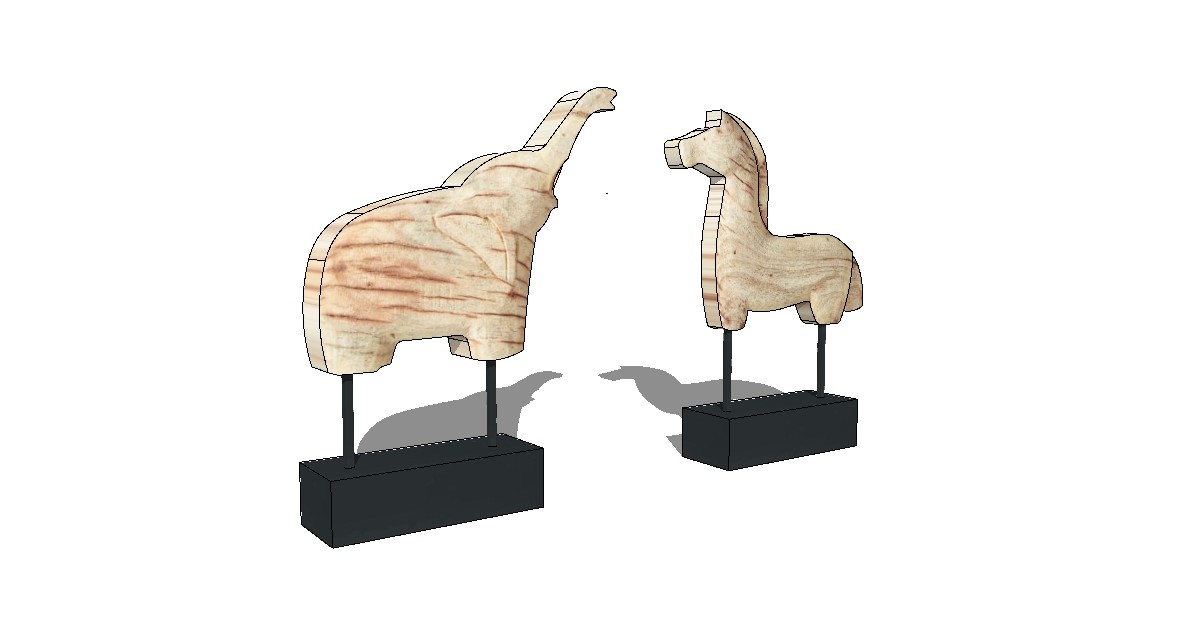 木雕马匹大象草图大师模型,木雕sketchup模型下载