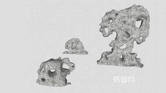 石头雕塑太湖石石灰岩SU模型下载_sketchup草图大师SKP模型