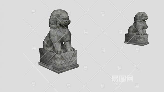 一对石狮子雕塑SU模型下载_sketchup草图大师SKP模型