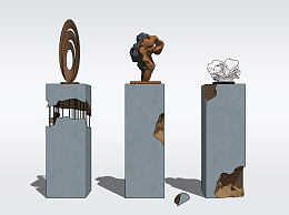 新中式金属抽象雕塑,艺术品,摆件su草图模型下载