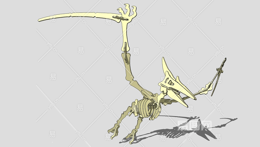 恐龙化石雕塑 恐龙骨架 翼龙su草图模型下载