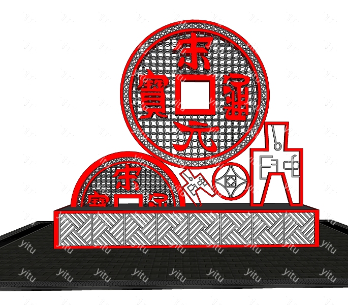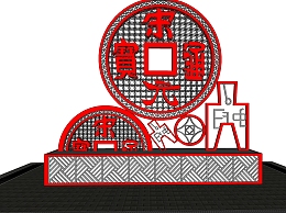 新中式古钱币雕塑su模型,摆件草图大师模型下载