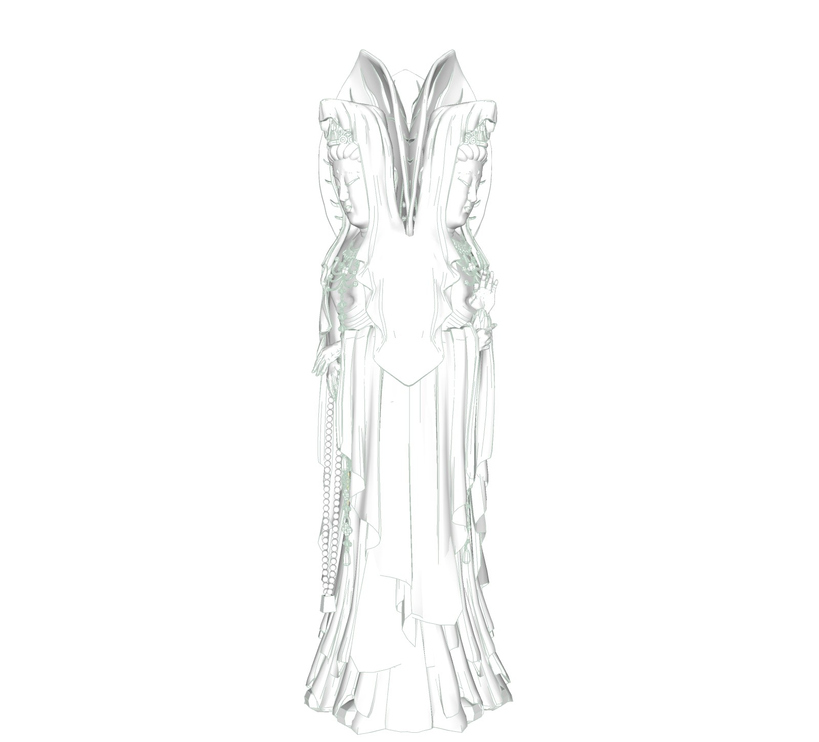中国三面观音雕塑su模型,摆件草图大师模型下载