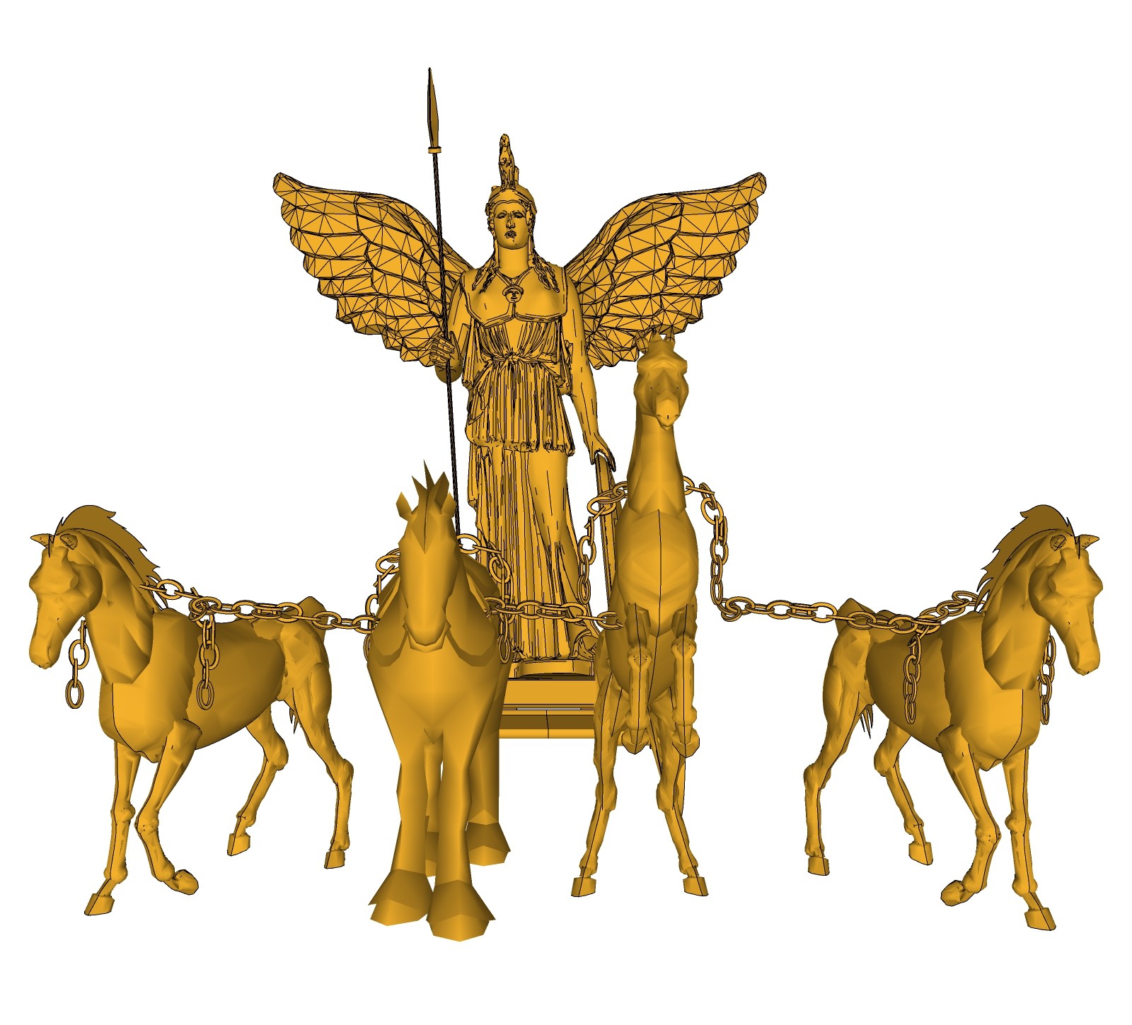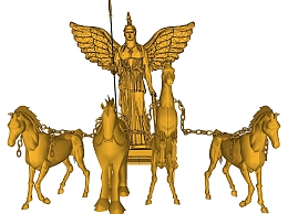 欧式雅典娜女神战车雕塑su模型,摆件草图大师模型下载